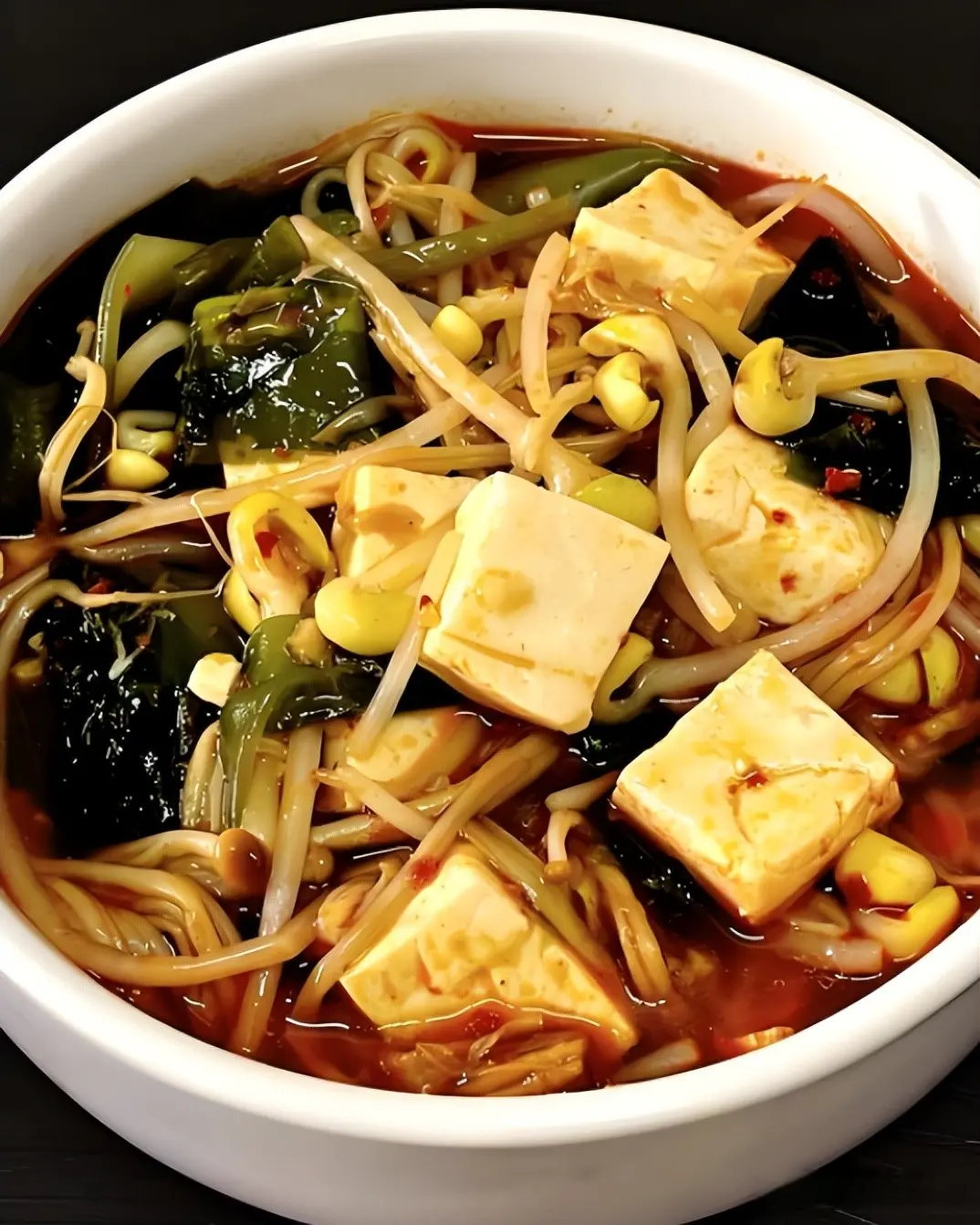 6. 炖煮: 用中小火将锅中的食材炖煮约10-15分钟,让豆芽和豆腐充分入味。